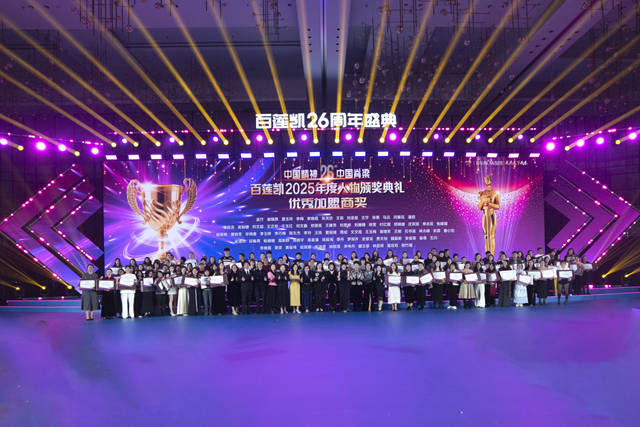 与总裁演唱会交相辉映的,是“百莲凯2025年度人物颁奖典礼”的荣耀时刻。聚光灯下,全国连锁店家年度“金牌加盟商奖”“十佳加盟商奖”“百佳加盟商奖”“优秀加盟商奖”等荣耀榜单逐一揭晓,获奖代表身着盛装登台领奖,从颁奖嘉宾手中接过沉甸甸的奖杯与荣誉证书。每一份荣誉的背后,都凝聚着加盟商们的辛勤付出与不懈奋斗,他们用实际行动诠释了百莲凯人的拼搏精神,也为全国美业从业者树立了榜样。