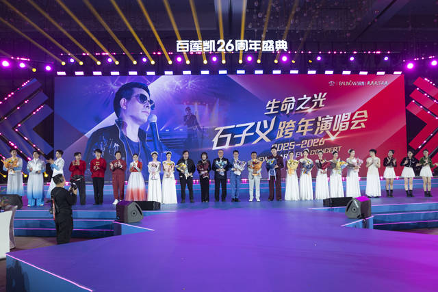 作为盛典的核心亮点之一,“生命之光·石子义2025-2026跨年演唱会”以匠心设计的五大篇章,为现场观众带来了一场沉浸式的文化狂欢盛宴。从“序曲·我们中国人”的激昂开篇,到“第一乐章·家国春秋”的深沉咏叹,再到“第二乐章·国风古韵”的典雅流转、“第三乐章·摇滚风暴”的热血沸腾,最后以“尾声·世界和平”的温情收尾,每一个篇章都紧扣主题,层层递进。