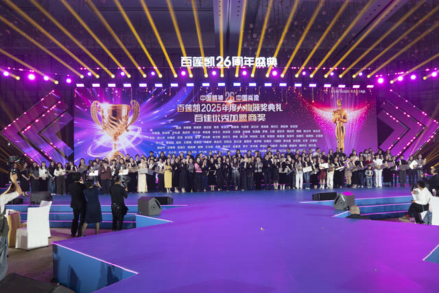 与总裁演唱会交相辉映的,是“百莲凯2025年度人物颁奖典礼”的荣耀时刻。聚光灯下,全国连锁店家年度“金牌加盟商奖”“十佳加盟商奖”“百佳加盟商奖”“优秀加盟商奖”等荣耀榜单逐一揭晓,获奖代表身着盛装登台领奖,从颁奖嘉宾手中接过沉甸甸的奖杯与荣誉证书。每一份荣誉的背后,都凝聚着加盟商们的辛勤付出与不懈奋斗,他们用实际行动诠释了百莲凯人的拼搏精神,也为全国美业从业者树立了榜样。