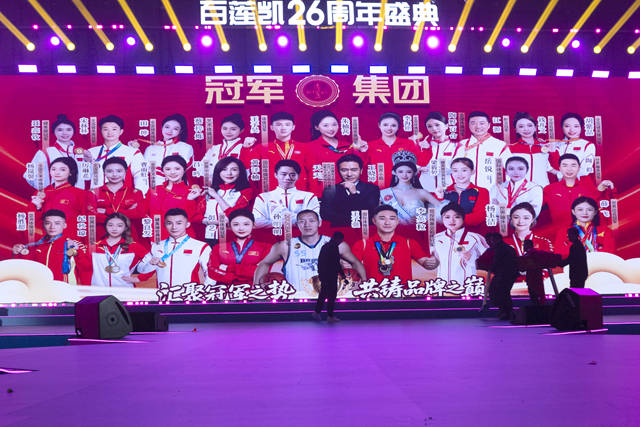 盛典现场,六大体育冠军的亲临助阵,成为引爆全场的又一重磅亮点。据悉,百莲凯集团已经与汇集近百位体育冠军的冠军集团达成战略合作,双方致力于弘扬冠军精神,赋能民族企业发展。活动现场,体育冠军们不仅为百莲凯送上了26周年的生日祝福,还带来了精彩的互动表演,他们身上“顽强拼搏、永不言弃”的冠军精神,与百莲凯的企业文化高度契合,也为品牌新征程注入了强大动力。